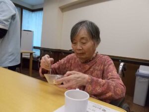 今日はまちだ園のおやつクラブがありました。ご利用者様より「お団子がまた食べたいね」と希望があり、本日は白玉団子をご準備しました。たれはきなこ・あんこ・みたらしの3種類です。
