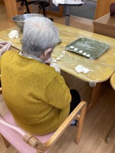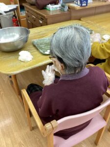 白玉づくりはご利用者にもお手伝いいただきました。皆様真剣に…おいしそうな白玉を作ってくださいました。