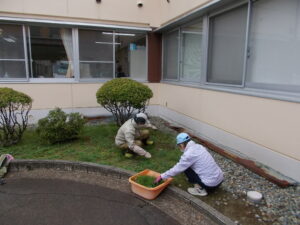 芝桜の植え替えでは、春に向けてきれいに咲かせるポイントも伝授していただきました。教わった通り、手入れをしっかり行って、来春満開の芝桜をご利用者に楽しんでいただけるように頑張りたいと思います。