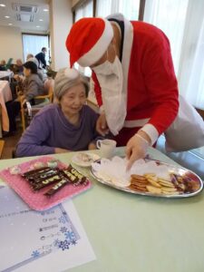 サンタクロースの登場に皆様「わー、すごいね」「クリスマスだね!!」と笑顔が溢れました。