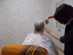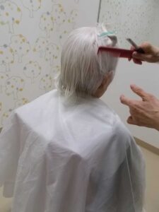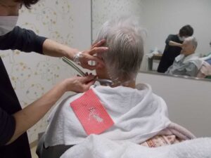 カットと顔剃りをしていただきます。床屋さんとの楽しそうな会話も聞こえてきました。